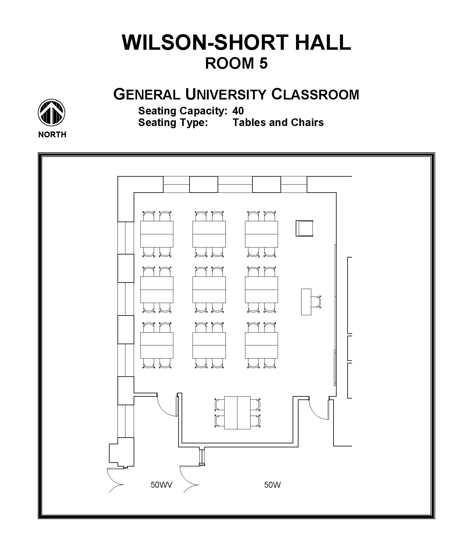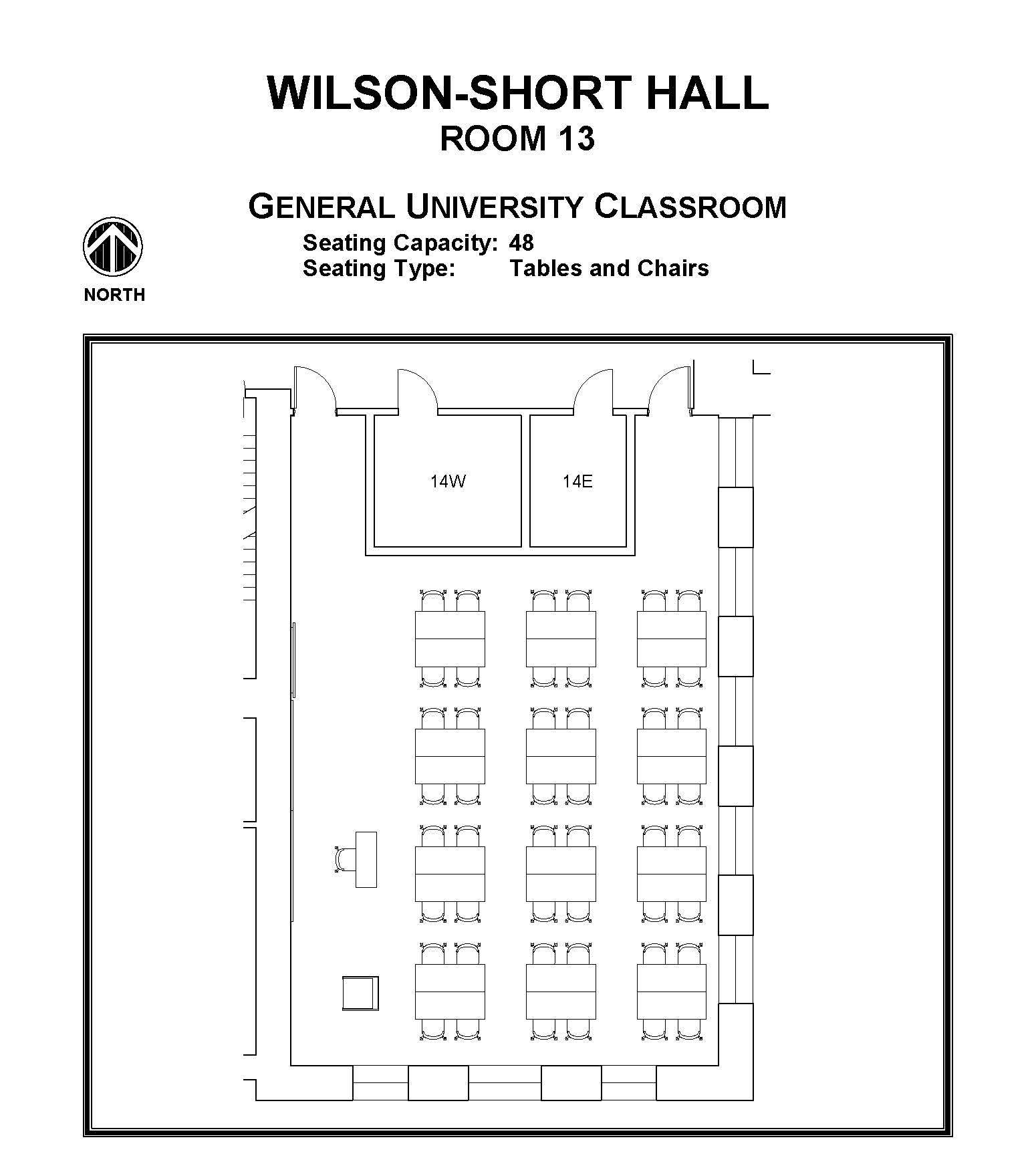 Wilson-Short Hall is home to the Department of Criminal Justice and Criminology, the Department of History, the Department of Sociology, the WSU Women’s Center, the Social and Economic Sciences Research Center, and the following general university classrooms.